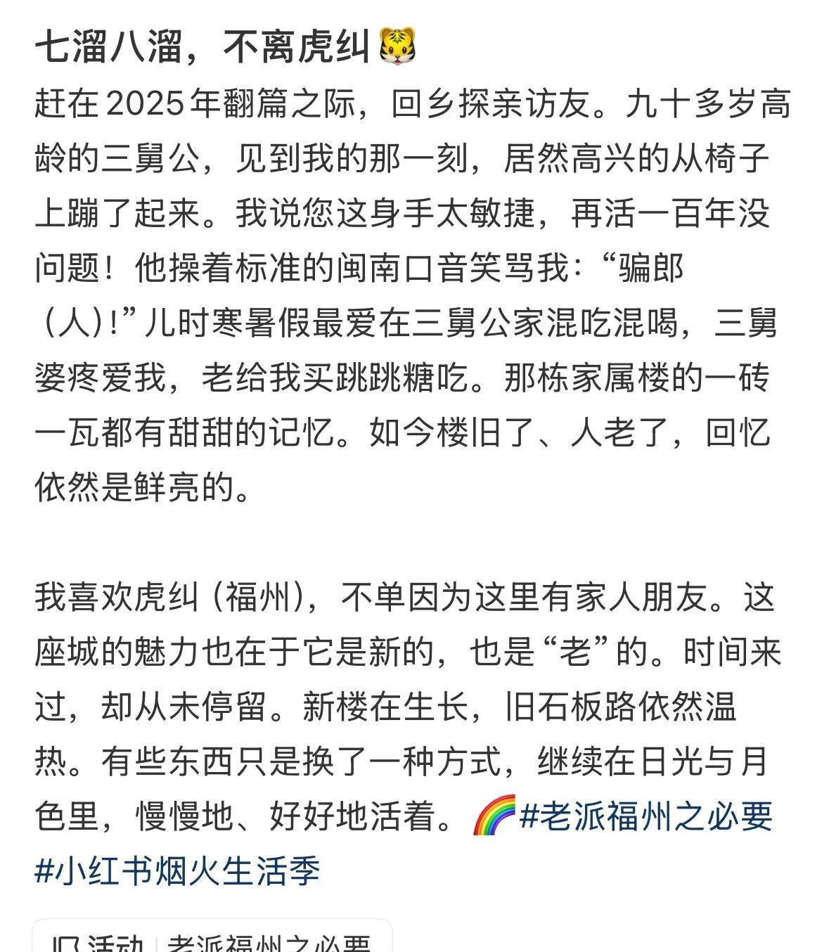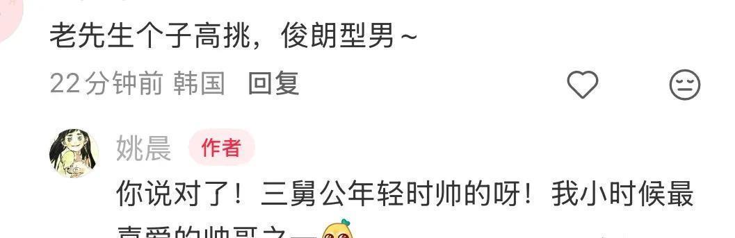 姚晨晒出在年前回福州探亲的照片,并配文三舅公听到她来了,90岁的高龄高兴地从椅子上跳了起来,姚晨还调侃他身手如此矫健还能活一百岁。姚晨称小时候最爱到三舅公家,三舅婆还会给她买糖吃,而且姚晨还在评论区回复网友称三舅公年轻的时候很帅,是她童年最爱的帅哥之一,亲戚的关系十分亲近。然而如今姚晨身价过亿,最疼爱她的三舅公仍然住在福州的老破小里,九十岁高龄只和三舅婆两人独居。